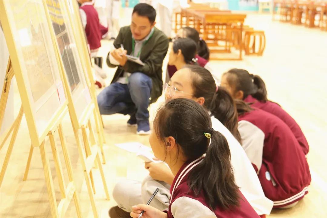參展的一百多幅書(shū)法作品,仿佛被賦予了生命。孩子們分組觀摩書(shū)法作品,他們用心體會(huì)著書(shū)法里蘊(yùn)含的詩(shī)歌、繪畫(huà)、舞蹈和音樂(lè),在濃厚的墨香氛圍中,感受著傳統(tǒng)文化的無(wú)邊魅力。